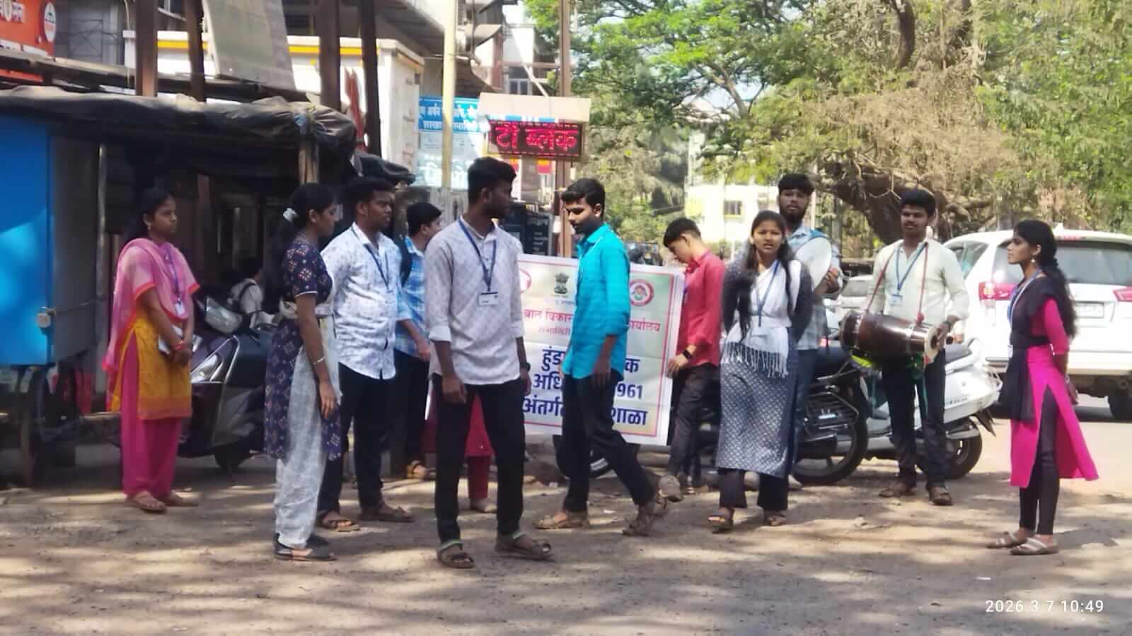 पथनाट्यादरम्यान विद्यार्थ्यांनी फलकांच्या माध्यमातून ‘हुंडा प्रतिबंधक कायदा १९६१’ मधील महत्त्वाच्या तरतुदींची माहिती दिली:कलम ३:हुंडा घेणे किंवा देणे हा गुन्हा असून, यासाठी किमान ५ वर्षांची कैद आणि १५,००० रुपये दंडाची तरतूद आहे.कलम ४:हुंड्याची मागणी करणे हा सुद्धा तितकाच गंभीर अपराध आहे.